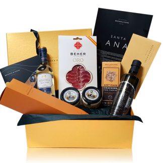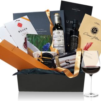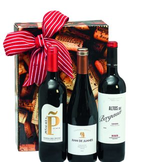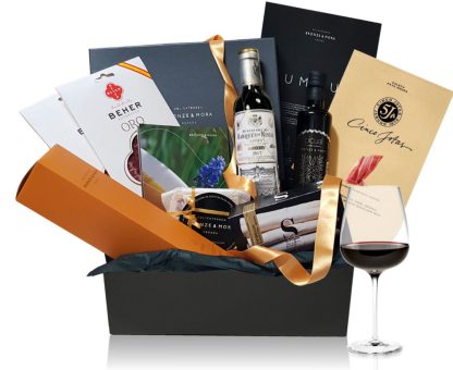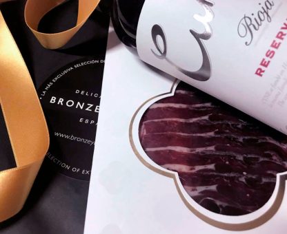 7º) Botella de vino tinto Rioja Marqués de Riscal Reserva (375 ml.). Características: Color; Vino de color cereza muy cubierto, intenso y con apenas signos de evolución | Nariz; Es muy expresivo con notas de regaliz, canela y pimienta negra, donde la larga crianza en madera apenas se percibe, gracias a su gran complejidad y concentración de fruta madura. | Boca; fresco, con taninos pulidos muy agradables, con buena estructura pero fácil de beber. El final de boca es largo y deja unos leves recuerdos balsámicos de gran calidad. | Puntuaciones en las principales guías gastronómicas; 93 puntos James Suckling – 91 puntos Wine Enthusiast – 92 puntos Vinous – 92 puntos Tim Atkin – 94 puntos Guía Peñín.